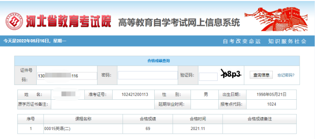②自考英语专升本自考英语成绩单截图(登录省教育考试院官网下载成绩单,需提供查询网址及密码)。